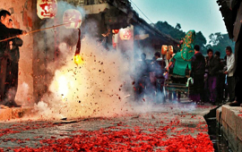 正月十六,溪口“穿蔗巷”